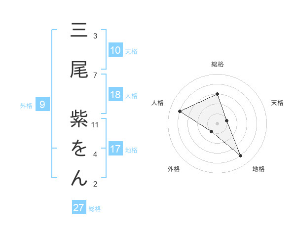 三尾 紫をんさんを姓名の画数から五運を鑑定