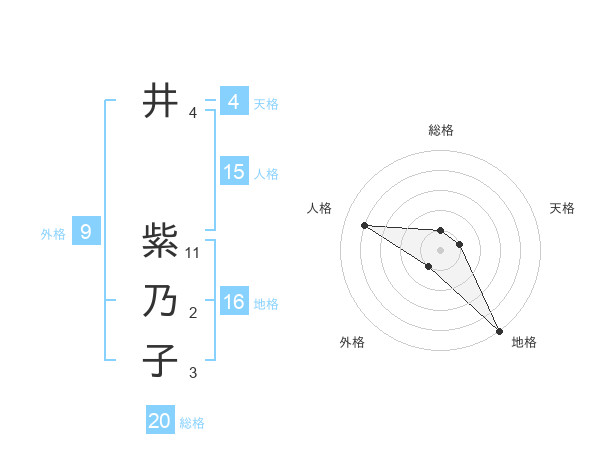井 紫乃子さんを姓名の画数から五運を鑑定