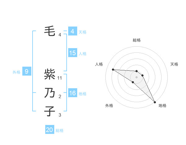 毛 紫乃子さんを姓名の画数から五運を鑑定