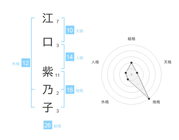 江口 紫乃子さんを姓名の画数から五運を鑑定