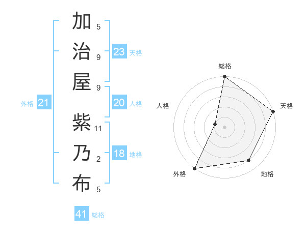 加治屋 紫乃布さんを姓名の画数から五運を鑑定