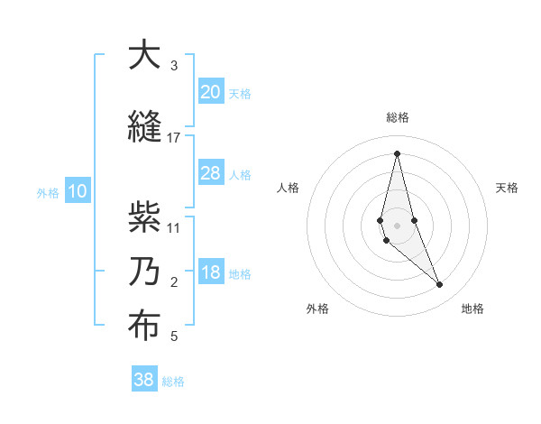 大縫 紫乃布さんを姓名の画数から五運を鑑定