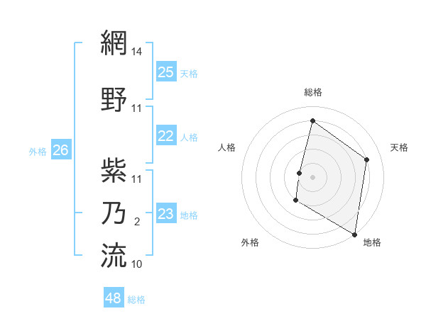 網野 紫乃流さんを姓名の画数から五運を鑑定