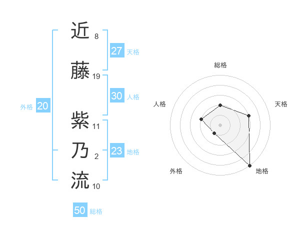 近藤 紫乃流さんを姓名の画数から五運を鑑定
