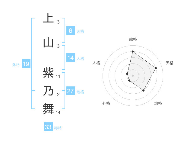 上山 紫乃舞さんの総格は33画の4点!