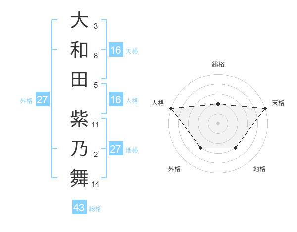 大和田 紫乃舞さんを姓名の画数から五運を鑑定