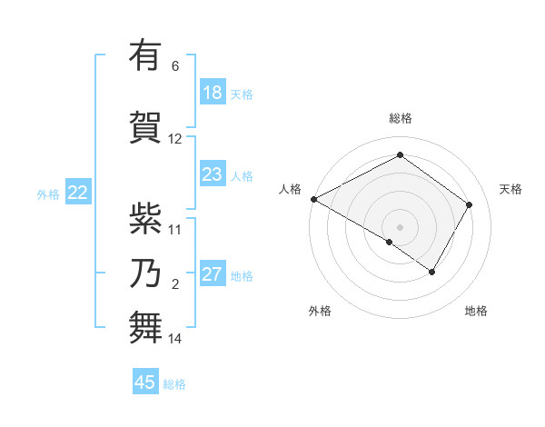 有賀 紫乃舞さんを姓名の画数から五運を鑑定
