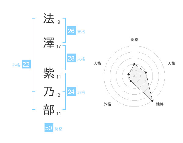 法澤 紫乃部さんを姓名の画数から五運を鑑定