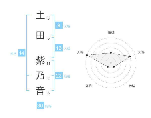 土田 紫乃音さんを姓名の画数から五運を鑑定