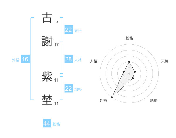 古謝 紫埜さんの外格は16画の5点!