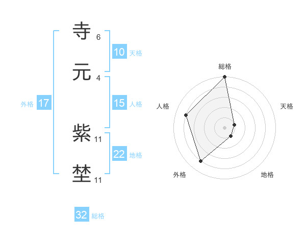 寺元 紫埜さんを姓名の画数から五運を鑑定