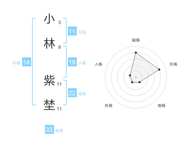 小林 紫埜さんを姓名の画数から五運を鑑定