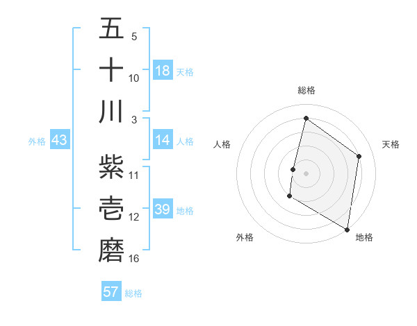 五十川 紫壱磨さんの総格は57画の4点!