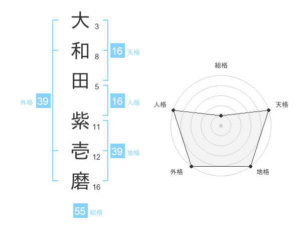 大和田 紫壱磨さんを姓名の画数から五運を鑑定
