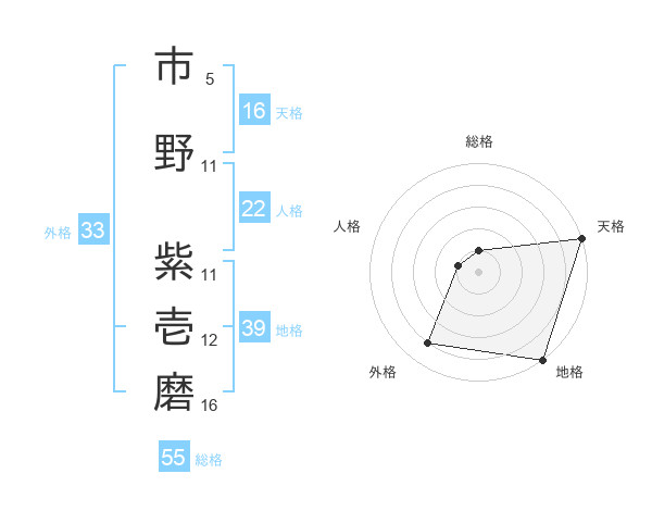 市野 紫壱磨さんの総格は55画の1点!