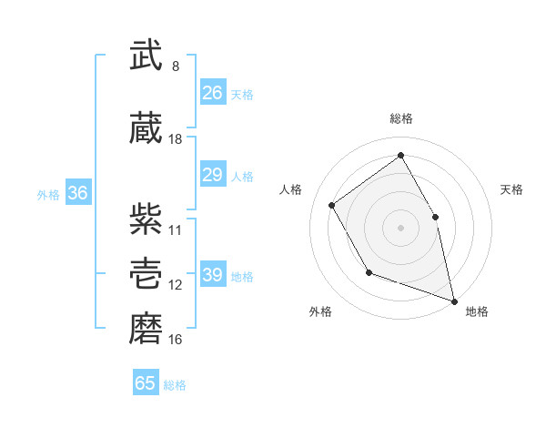 武蔵 紫壱磨さんの総格は65画の4点!