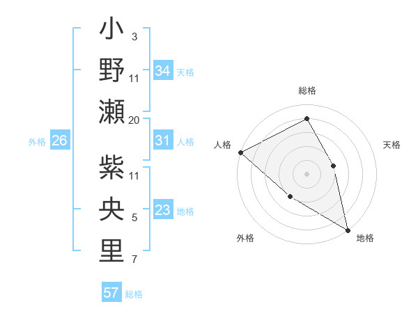 小野瀬 紫央里さんを姓名の画数から五運を鑑定