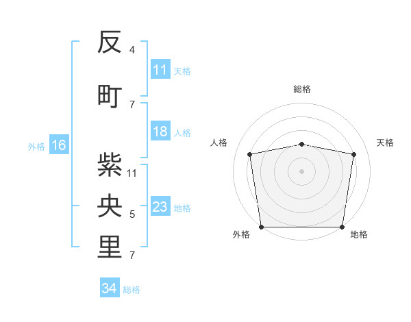 反町 紫央里さんの地格は23画の5点!