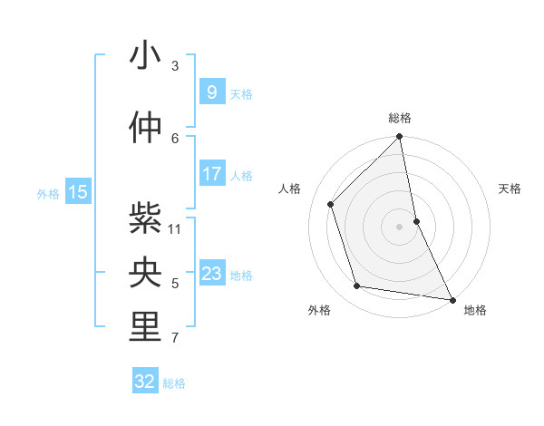 小仲 紫央里さんの総格は32画の5点!