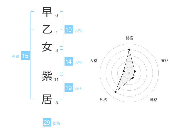早乙女 紫居さんの総格は29画の4点