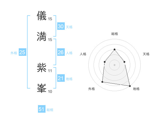 儀満 紫峯さんの総格は51画の3点!