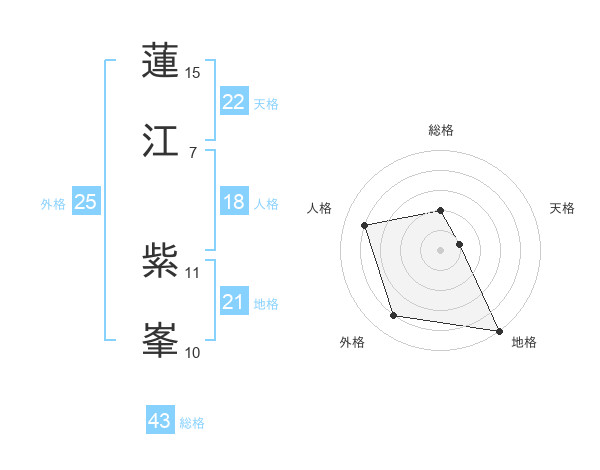 蓮江 紫峯さんの天格は22画の1点!