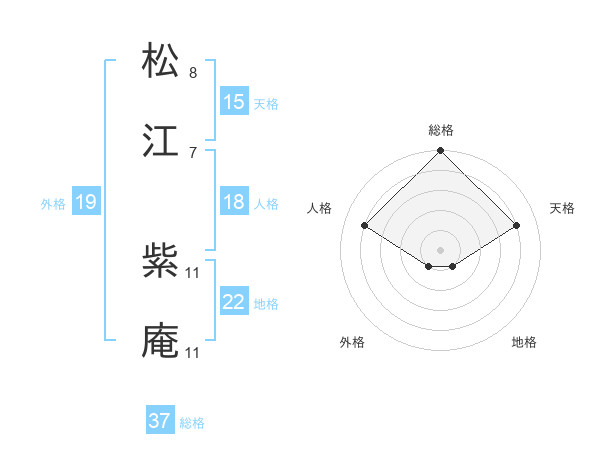 松江 紫庵さんの総格は37画の5点!