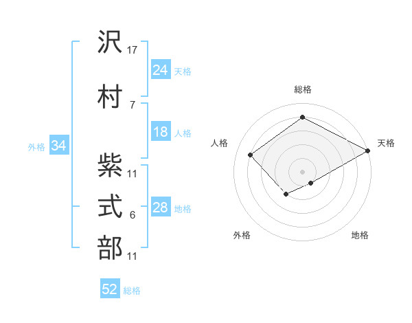 沢村 紫式部さんを姓名の画数から五運を鑑定