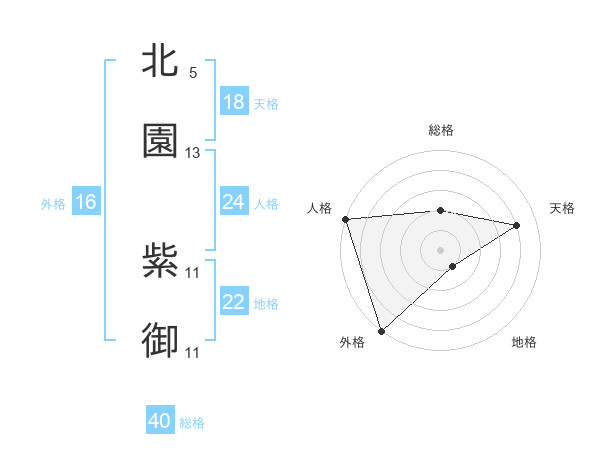 北園 紫御さんを姓名の画数から五運を鑑定