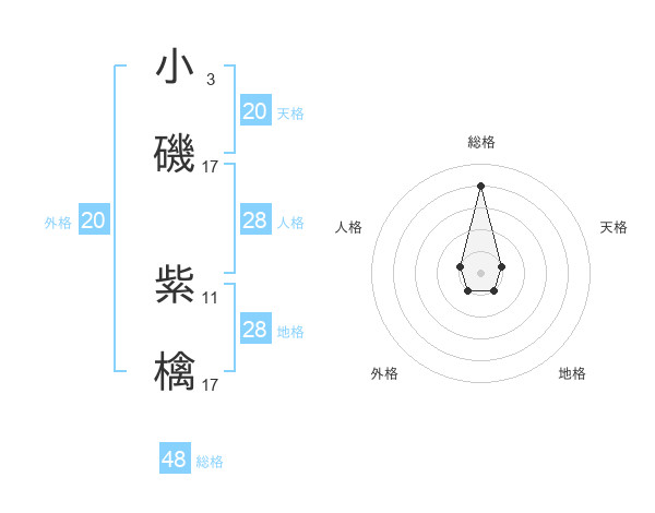 小磯 紫檎さんを姓名の画数から五運を鑑定