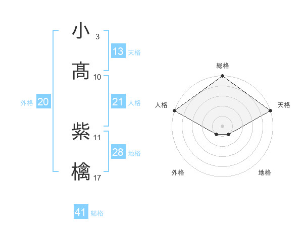 小髙 紫檎さんを姓名の画数から五運を鑑定