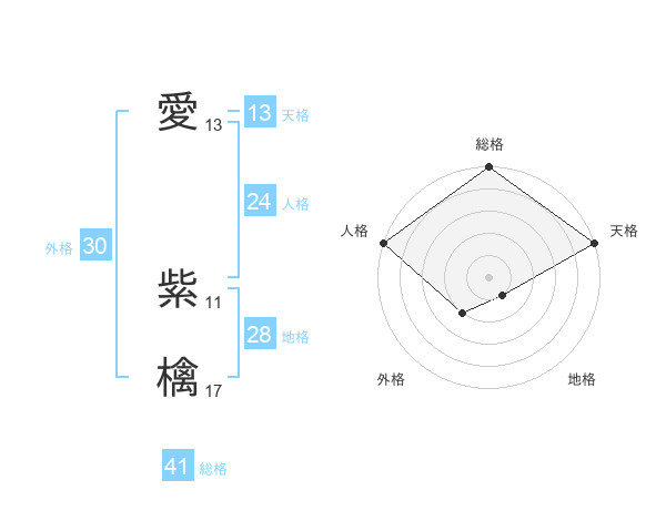 愛 紫檎さんを姓名の画数から五運を鑑定