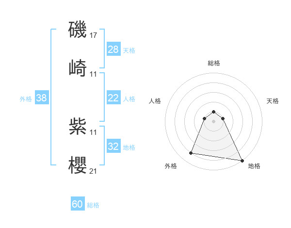 磯崎 紫櫻さんの外格は38画の4点!