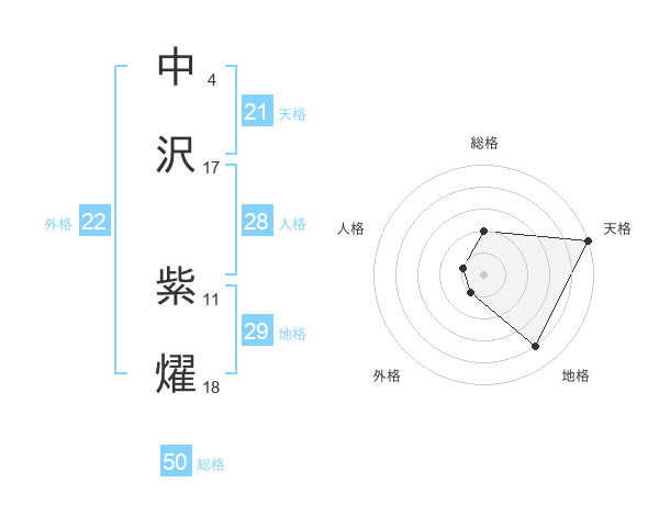 中沢 紫燿さんの総格は50画の2点!