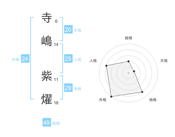 寺嶋 紫燿さんを姓名の画数から五運を鑑定