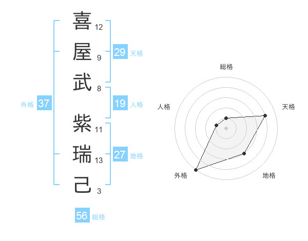 喜屋武 紫瑞己さんの外格は37画の5点!