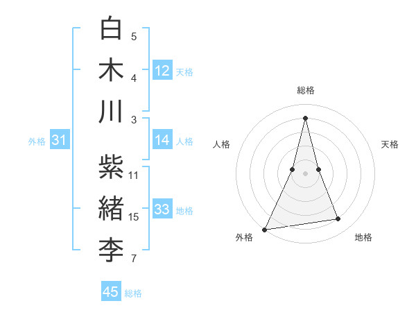 白木川 紫緒李さんを姓名の画数から五運を鑑定