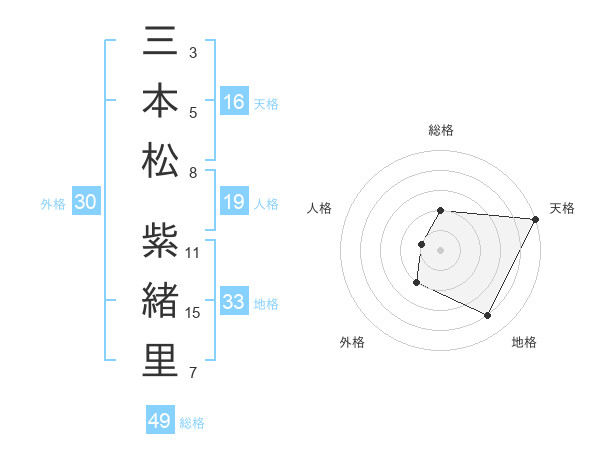 三本松 紫緒里さんの天格は16画の5点!