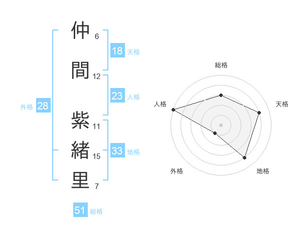 仲間 紫緒里さんを姓名の画数から五運を鑑定