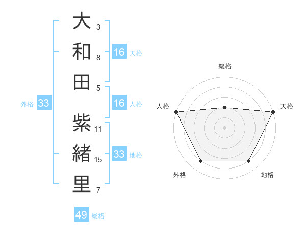 大和田 紫緒里さんを姓名の画数から五運を鑑定