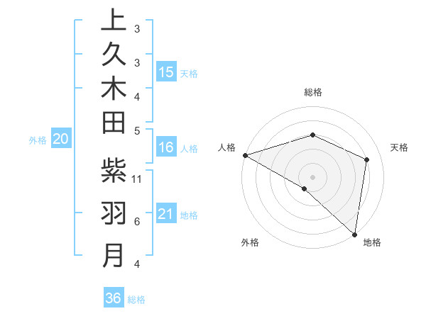 上久木田 紫羽月さんを姓名の画数から五運を鑑定