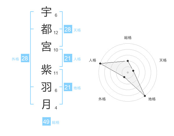 宇都宮 紫羽月さんを姓名の画数から五運を鑑定