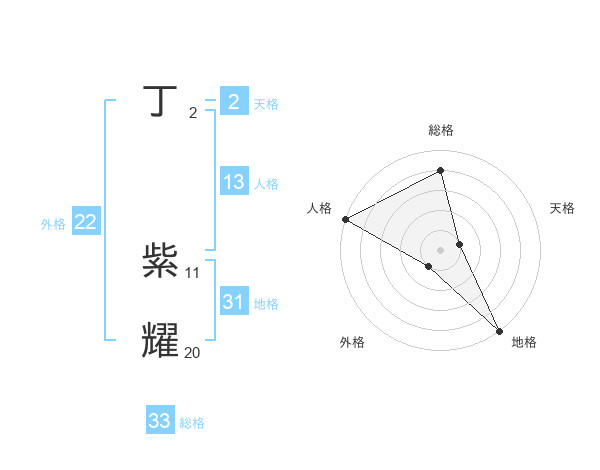 丁 紫耀さんの総格は33画の4点!