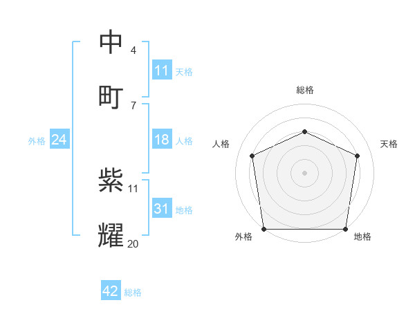 中町 紫耀さんの天格は11画の4点!