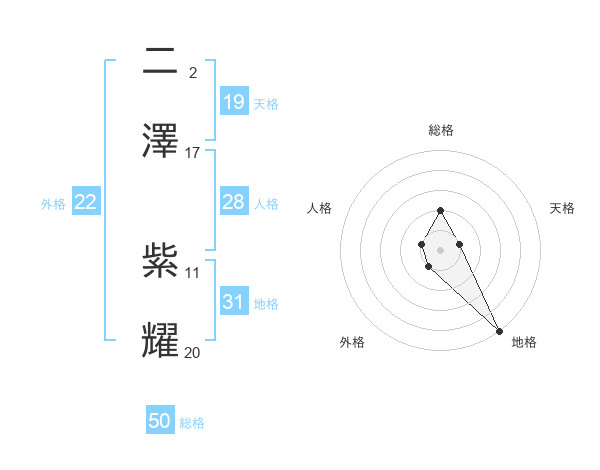 二澤 紫耀さんの総格は50画の2点!
