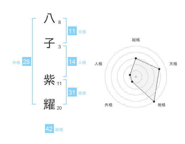 八子 紫耀さんの天格は11画の4点!