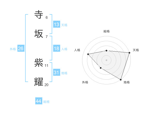 寺坂 紫耀さんを姓名の画数から五運を鑑定