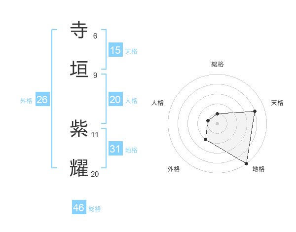 寺垣 紫耀さんの地格は31画の5点!