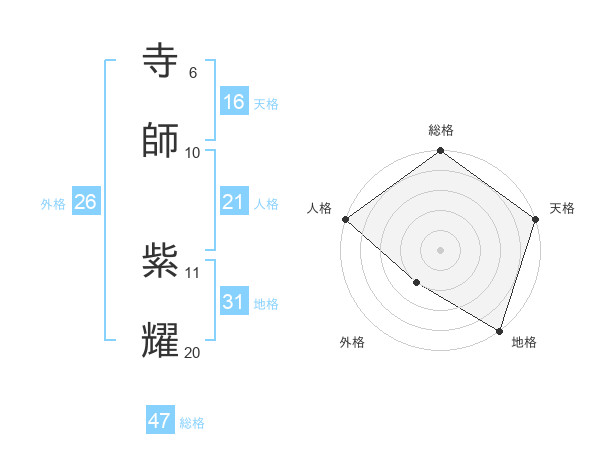 寺師 紫耀さんの総格は47画の5点!