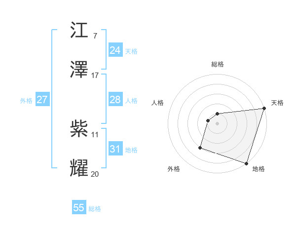 江澤 紫耀さんの天格は24画の5点!